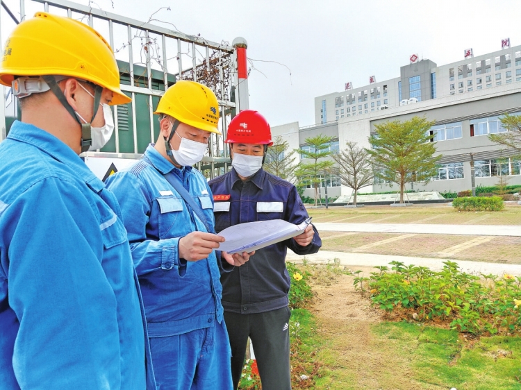 2月13日,廣東電網(wǎng)公司珠海供電局工作人員對(duì)重要用戶(hù)的用電設(shè)備進(jìn)行防汛隱患排查。 劉俞君 攝