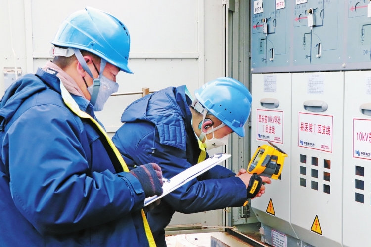 為保障云南省玉溪市華寧縣留觀點(diǎn)、留驗(yàn)點(diǎn)、醫(yī)學(xué)治療點(diǎn)及滯留旅客安置點(diǎn)等防控疫情第一線的正常用電,云南電網(wǎng)公司玉溪華寧供電局組織人員對(duì)涉及線路、設(shè)備進(jìn)行特巡特維,保障可靠供電。圖為該局配電管理所員工對(duì)縣醫(yī)院支線的開(kāi)關(guān)柜進(jìn)行測(cè)溫。 向生偉 攝