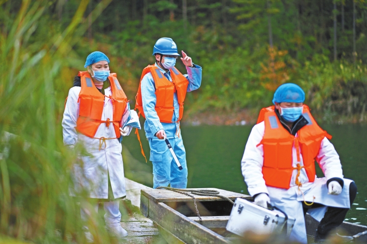 2月8日,在臺(tái)江縣革一鎮(zhèn)排生村,臺(tái)江供電局臺(tái)盤供電所黨員王清亮和當(dāng)?shù)匦l(wèi)生部門工作人員乘船前往工作點(diǎn)?!㈤_(kāi)福 攝影報(bào)道