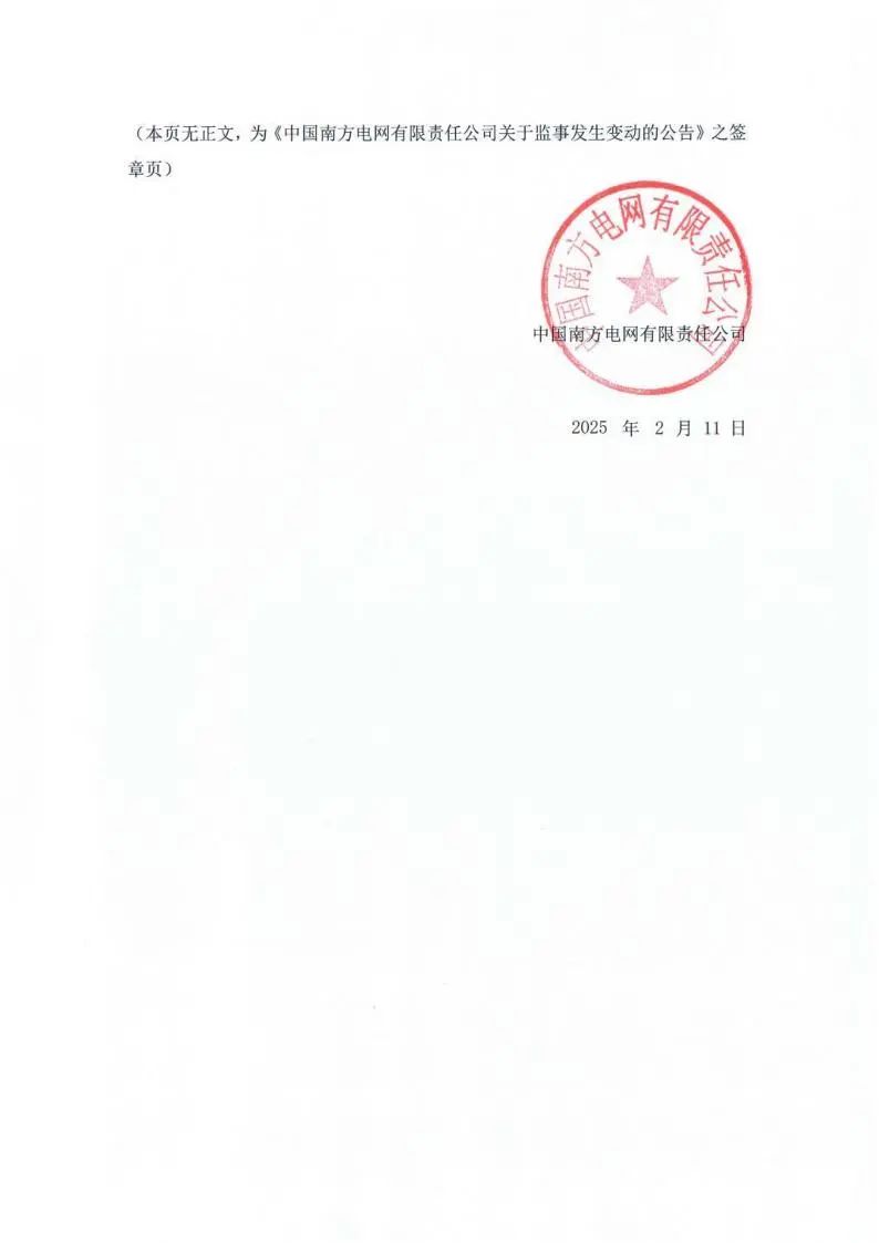 2月11日,中國(guó)南方電網(wǎng)有限責(zé)任公司發(fā)布關(guān)于監(jiān)事發(fā)生變動(dòng)的公告。公司根據(jù)《中華人民共和國(guó)公司法》對(duì)《中國(guó)南方電網(wǎng)有限責(zé)任公司章程》進(jìn)行了修訂,按照修訂后的《中國(guó)南方電網(wǎng)有限責(zé)任公司章程》,公司不再設(shè)監(jiān)事會(huì)、監(jiān)事,由董事會(huì)審計(jì)與風(fēng)險(xiǎn)委員會(huì)行使相關(guān)職權(quán)。據(jù)此,馮堅(jiān)同志不再擔(dān)任中國(guó)南方電網(wǎng)有限責(zé)任公司監(jiān)事職務(wù)。
