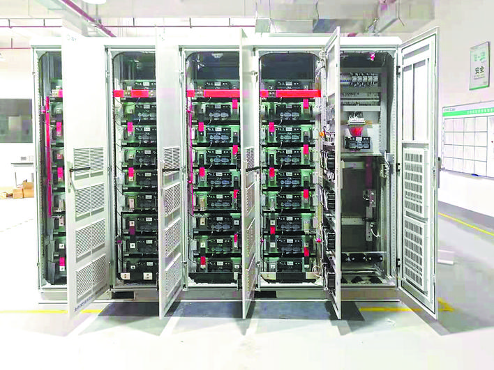 為確保項目可行性,攻關(guān)團(tuán)隊先在實驗室完成50千瓦樣機(jī)各項功能試驗后,再進(jìn)行500千瓦超級電容微儲能裝置的研制。該裝置主要由超級電容模塊、電力電子變流器和快速功率控制器三部分組成。快速功率控制器可在10毫秒內(nèi)完成頻率檢測,電力電子變流器可在2毫秒內(nèi)實現(xiàn)有功功率的快速、精準(zhǔn)支撐,并且電力電子變流器集成了電網(wǎng)諧波主動抑制、無功功率靈活調(diào)節(jié)功能,讓該裝置成為集儲能與電能質(zhì)量管理于一體的新型補(bǔ)償裝置。今年2月7日,這套變電站超級電容微儲能裝置投入使用。