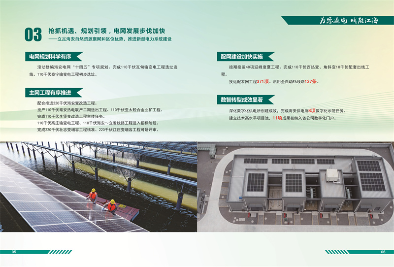 《白皮書》披露,2023年,該公司組織召開海安市迎峰度夏保供工作會議,深挖非工空調(diào)負(fù)荷調(diào)控潛力,促請政府出臺需求響應(yīng)、非工負(fù)荷調(diào)節(jié)能力建設(shè)等支持政策。堅(jiān)持“杜絕增量、清除存量”原則,拆除1000千伏泰吳線下方違規(guī)大棚。滾動修編海安電網(wǎng)“十四五”專項(xiàng)計(jì)劃,主網(wǎng)工程有序推進(jìn)。深化數(shù)字化供電所創(chuàng)建成效,完成8項(xiàng)數(shù)字化示范任務(wù)。11項(xiàng)成果被納入省公司數(shù)字化門戶。完成發(fā)明專利授權(quán)4項(xiàng)、成果轉(zhuǎn)化2項(xiàng),年度QC項(xiàng)目榮獲市公司一等獎。深化“開門接電”示范區(qū)建設(shè),全面省級以上園區(qū)全覆蓋,成立重大項(xiàng)目服務(wù)小組,服務(wù)萬噸冷鏈等14個省市級重大項(xiàng)目接電。公司員工助學(xué)殘疾兒童事跡《神秘叔叔,你是誰?》相繼被人民日報(bào)、新華社、中國青年報(bào)等中央媒體相繼轉(zhuǎn)載。