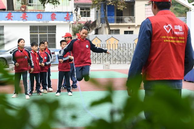 洛麥小學(xué)的學(xué)生,用捐贈(zèng)的體育用品在跳繩。龍定錦攝