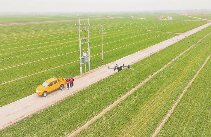 “紅馬甲”網(wǎng)格員操作無人機巡檢農(nóng)業(yè)排灌重點線路。