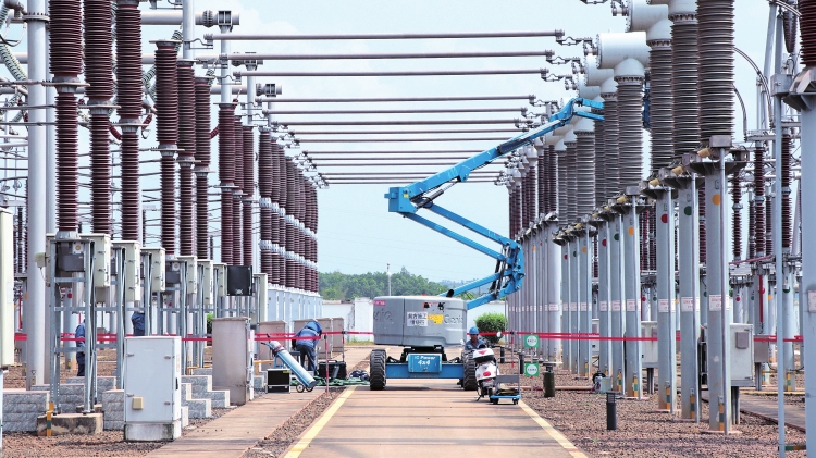 圖為3月23日,在海南澄邁500千伏福山變電站內(nèi),超高壓公司廣州局??诜志謾z修人員通過高空車開展防發(fā)熱專項(xiàng)工作,同時(shí)進(jìn)行斷路器試驗(yàn)。
