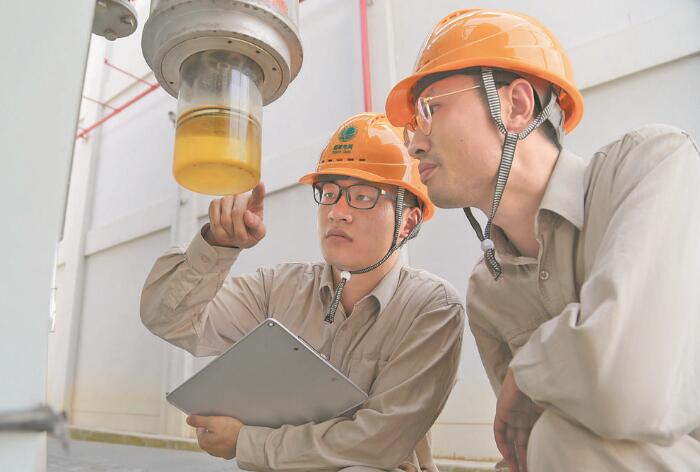 圖為運檢人員檢查充油設備油樣。吳米佳 攝