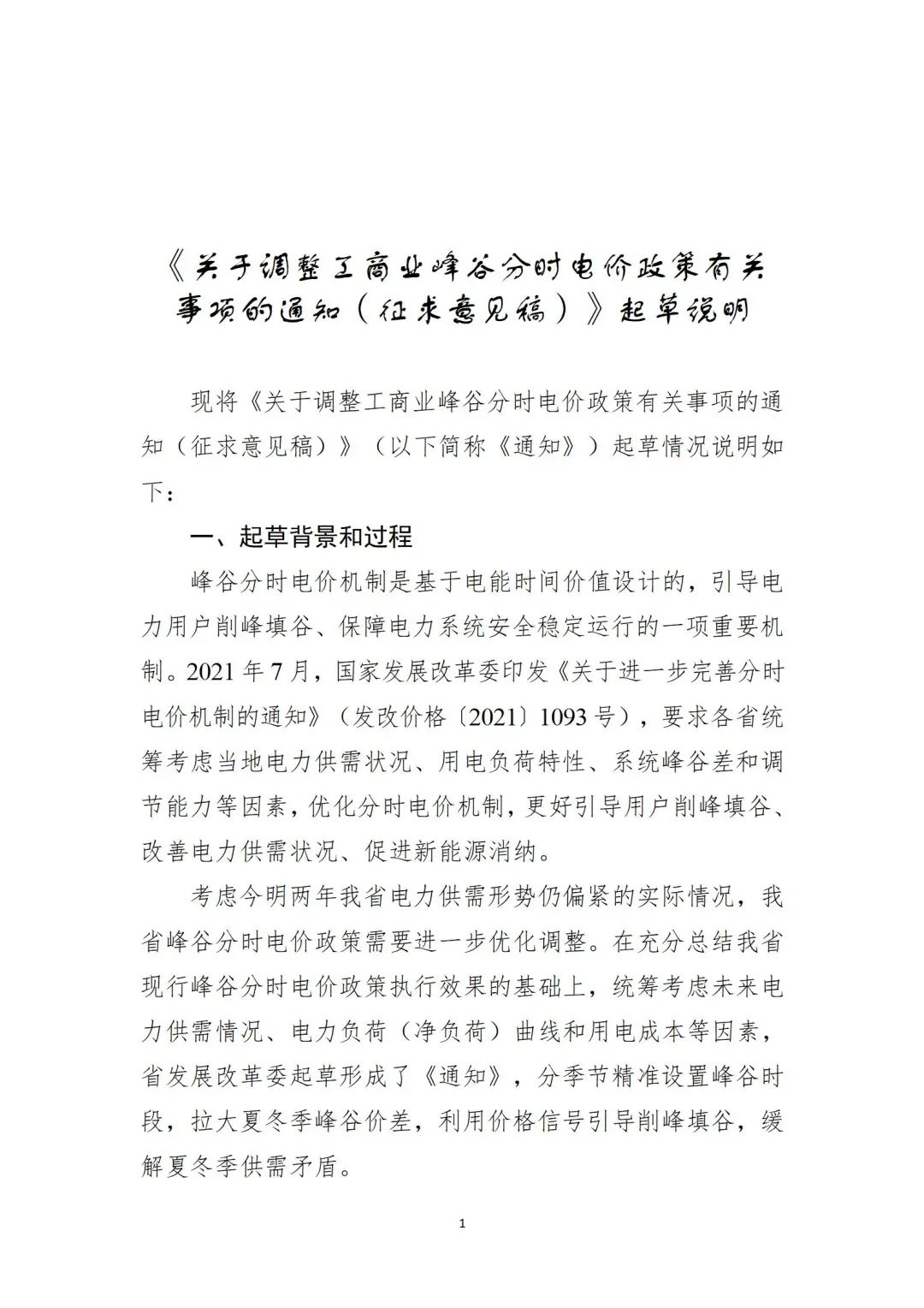 1.關(guān)于調(diào)整工商業(yè)峰谷分時電價政策有關(guān)事項的通知(征求意見稿)