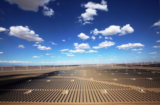 正值進入小寒,在新疆東部的哈密十三間房,勁風飛馳,一座座潔白的大型風機不停歇地旋轉。在新疆南部的塔克拉瑪干沙漠,晴空萬里,一片片亮閃閃的光伏電池板如中央空調一樣,正在向塞外遠方輸送著綠色“暖氣”。