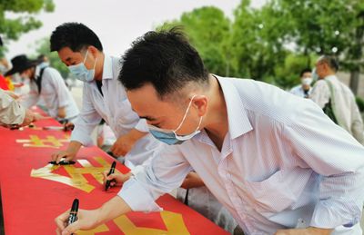7點30分以后,陸續(xù)進(jìn)場上班的干部職工沐浴著初夏明媚的陽光,感受著安全穩(wěn)定的和諧氛圍,在寫有“安全生產(chǎn)月”簽名活動,在寫有“遵守安全生產(chǎn)法 當(dāng)好第一責(zé)任人”紅色橫幅上,鄭重簽下自己的名字,快速瀏覽宣傳手冊,以這種方式作出嚴(yán)肅承諾,嚴(yán)格落實安全生產(chǎn)規(guī)章制度,堅決當(dāng)好自己崗位的“第一責(zé)任人”,切實守護(hù)個人安全,共同保障企業(yè)安全。