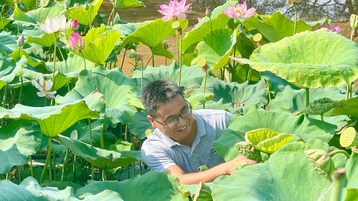 活動(dòng)當(dāng)日,陽(yáng)光明媚,微風(fēng)輕拂。大家懷著期待與熱情齊聚在一片美麗的蓮池旁。蓮池中的蓮葉田田,蓮花嬌艷欲滴,蓮子飽滿(mǎn)豐碩,大家小心翼翼地?fù)荛_(kāi)蓮葉,尋找成熟的蓮蓬。在采摘的過(guò)程中,大家相互協(xié)作,分享著發(fā)現(xiàn)的喜悅。蓮塘中不時(shí)傳來(lái)歡快的笑聲,現(xiàn)場(chǎng)氣氛熱烈而融洽。