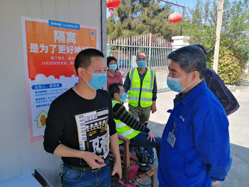 他組織編制了《項目部預(yù)防新型冠狀病毒肺炎防護(hù)措施》,成立了后勤管理組,以一系列實打?qū)嵉呐e措全面落實防疫措施。食堂每天消殺、通風(fēng),高東旺每天督導(dǎo)檢查,確保職工用餐安全;在項目部駐地門口,設(shè)置專人負(fù)責(zé)的出入登記、體溫測量;在宿舍設(shè)置專人每天全方位消毒;設(shè)立隔離間,對疫情返崗職工進(jìn)行14天的隔離觀察;組織建立返崗隔離職工微信群,通過微信交流了解返崗職工需求,及時幫助職工解決所想所需。目前,潮電項目部隊伍保持穩(wěn)定。
