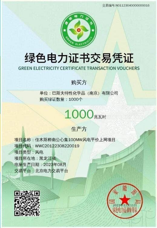龍源電力高效推進綠證應領盡領,全力支持集團全產(chǎn)業(yè)100%綠電消費工作,所屬碳資產(chǎn)公司在集團電力營銷公司的組織、指導下,積極配合推動本次綠證核發(fā)交易,與主管機構審核要求對標看齊,按核發(fā)時間節(jié)點倒排工期,統(tǒng)籌交易方報價需求、合同簽署,最終促成樺南公心集100兆瓦風電項目與德國巴斯夫特性化學品(南京)有限公司綠證劃轉(zhuǎn)交易,獲得全國首張綠色電力證書交易憑證。