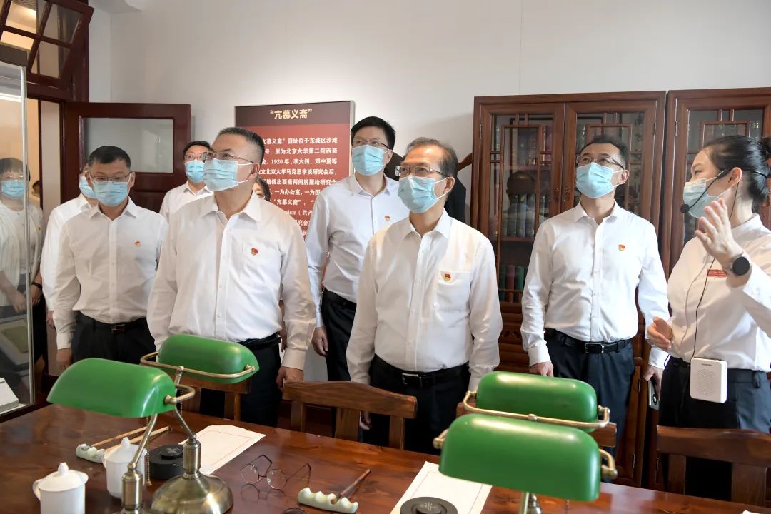 在北大紅樓,江毅帶領(lǐng)黨組理論學(xué)習(xí)中心組成員重溫了入黨誓詞,集體參觀了“光輝偉業(yè) 紅色序章——北大紅樓與中國共產(chǎn)黨早期北京革命活動(dòng)主題展”,通過一件件革命文物回顧了李大釗、陳獨(dú)秀等革命先驅(qū)推動(dòng)馬克思主義在中國早期傳播、醞釀和籌建中國共產(chǎn)黨的珍貴歷史。