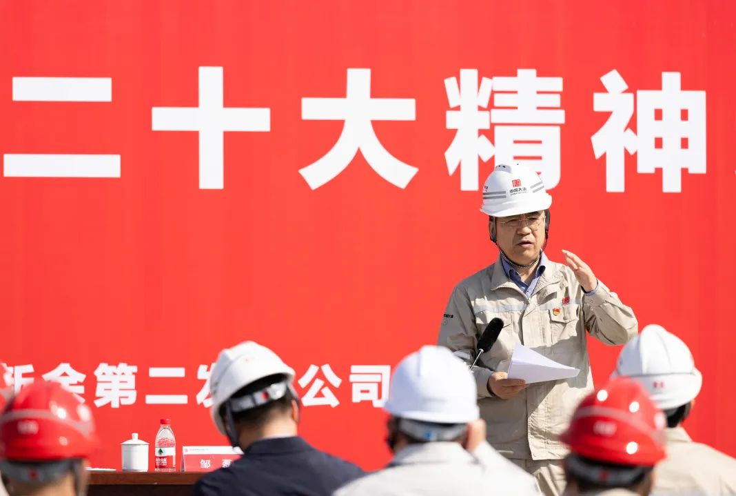 在工地現(xiàn)場(chǎng)的一片空地上,鄒磊與項(xiàng)目部干部職工、參與工程施工的建設(shè)和監(jiān)理單位職工面對(duì)面進(jìn)行交流,以鮮活的事例、通俗的語(yǔ)言、真切的情感對(duì)黨的二十大精神進(jìn)行了解讀闡釋,和大家一起共同學(xué)習(xí)了黨的二十大精神。鄒磊強(qiáng)調(diào),新余二期正值工程建設(shè)的關(guān)鍵時(shí)期,要切實(shí)抓好組織領(lǐng)導(dǎo)、宣傳宣講和學(xué)習(xí)培訓(xùn)工作,確保黨的二十大精神入腦入心。要用黨的二十大精神指導(dǎo)工程建設(shè)實(shí)踐,確保“兩不超、三個(gè)零”,做到“五嚴(yán)禁”,加快建設(shè)“四優(yōu)工程”,把新余二期建設(shè)成為人與自然和諧共生的低碳綠色轉(zhuǎn)型示范電廠,為江西省經(jīng)濟(jì)社會(huì)發(fā)展和社會(huì)進(jìn)步“提供清潔能源、點(diǎn)亮美好生活”。