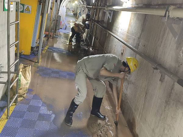 團(tuán)員青年清理淤沙現(xiàn)場(chǎng)