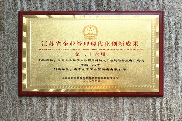 省國資委企業(yè)改革發(fā)展處處長劉偉于會上發(fā)布第二十六屆江蘇省企業(yè)管理現(xiàn)代化創(chuàng)新成果并進(jìn)行頒發(fā),其中一等42項(xiàng)、二等67項(xiàng),公司“發(fā)電企業(yè)基于大數(shù)據(jù)分析與人工智能的智能電廠建設(shè)”榮獲江蘇省企業(yè)管理現(xiàn)代化二等創(chuàng)新成果。