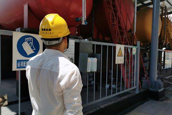“報(bào)告主值,化水區(qū)域設(shè)備運(yùn)行正常,1號(hào)酸罐液位1.6米,2號(hào)酸罐液位…… ”化學(xué)巡檢人員正拿著對(duì)講機(jī)匯報(bào)巡檢情況,我們可以從鏡頭上看到,高溫的洗禮下整件衣服都已經(jīng)貼著后背,滿臉大汗就不在話下。