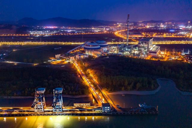 夜間運行的輸煤皮帶
