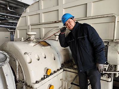 “#5-1供熱循環(huán)水泵故障,請(qǐng)盡快處理!”1月28日20:05,值班小組正在#6機(jī)12.6米巡檢,班長(zhǎng)詹涇永的手機(jī)鈴聲突然響起,話筒里傳來(lái)焦急的聲音。“收到,馬上處理!”他火速帶領(lǐng)2名值班人員前往現(xiàn)場(chǎng)。