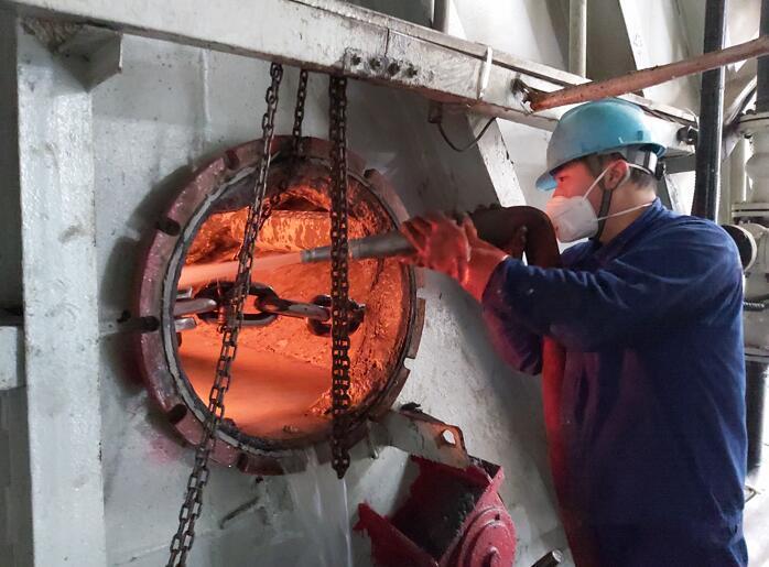 “目前來看,問題只可能是撈渣機底板與導輪間隙有問題或槽體內(nèi)刮板脫落,大家分頭重點排查這兩方面?!痹诖蠹颐H粺o措時,生產(chǎn)副總經(jīng)理徐光學一語點醒夢中人。鎖定“疑兇”,維護部副主任徐德剛迅速組織技術(shù)骨干研討。按照疫情防護需要,幾位專業(yè)行家距離一米以上,“吼”完了研討會,并在較短時間內(nèi)擬定出三個處理方案,但所有方案的前提均是“確定底板情況!”