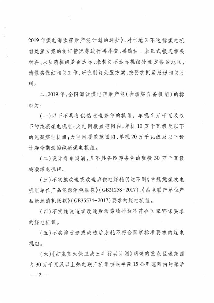 國(guó)家能源局下達(dá)2019年煤電行業(yè)淘汰落后產(chǎn)能目標(biāo)任務(wù)