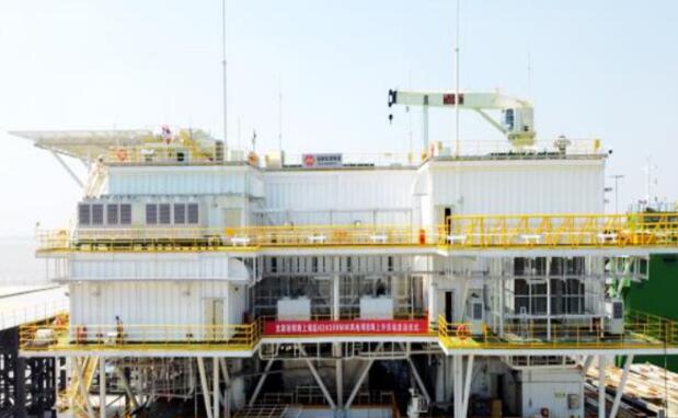 該座220千伏海上升壓站完全由國(guó)內(nèi)自主設(shè)計(jì)、制造、安裝,下部基礎(chǔ)采用樁基導(dǎo)管架基礎(chǔ)型式,上部主體分為三層,平面尺寸約50米長(zhǎng)、45米寬,高23米,總重約4000噸,規(guī)劃容量40萬(wàn)千瓦。在設(shè)計(jì)期間,龍?jiān)措娏εc設(shè)計(jì)單位通過(guò)多輪設(shè)備選型和結(jié)構(gòu)布置調(diào)整,不斷優(yōu)化工程量,使海上升壓站在同等容量、同樣功能、同類(lèi)設(shè)備布置的海上升壓站中重量最輕。該站于8月下旬發(fā)運(yùn),自南向北航行約200海里,于9月初到達(dá)安裝點(diǎn)位。經(jīng)過(guò)約10小時(shí)的周密施工,終于在9月9日實(shí)現(xiàn)了海上升壓站主體與下部基礎(chǔ)一次合攏。此次升壓站安裝工程,主體及基礎(chǔ)累計(jì)吊裝重量約6000噸,是名副其實(shí)的海上“巨無(wú)霸”。該升壓站承擔(dān)了90臺(tái)4.5兆瓦海上風(fēng)機(jī)的升壓“服務(wù)”,項(xiàng)目將于年底前并網(wǎng)發(fā)電。