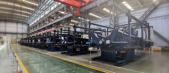 在大規(guī)模生產(chǎn)工作中,有效拓寬生產(chǎn)空間、采用精細(xì)化車間定置管理將極大提升生產(chǎn)效率。生產(chǎn)團(tuán)隊(duì)根據(jù)物資到貨情況及生產(chǎn)進(jìn)程,合理規(guī)劃空間布局,提高空間利用率的同時(shí)兼顧后續(xù)工序便利性。充分利用外場(chǎng)地及庫(kù)房空間,巧思布置,使得大批量存放半成品機(jī)組得以實(shí)現(xiàn)。整齊劃一的機(jī)組,形成了華銳風(fēng)電一道最美的風(fēng)景線。