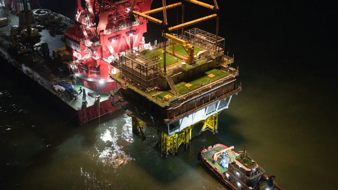 安排專人駐場對接,奮力克服風(fēng)場所在海域風(fēng)大浪高、施工窗口期短、施工難度大等困難,順利完成了升壓站起吊、對接、就位等一系列施工工序,精準(zhǔn)完成海上升壓站上部組塊與導(dǎo)管架的對位合體。