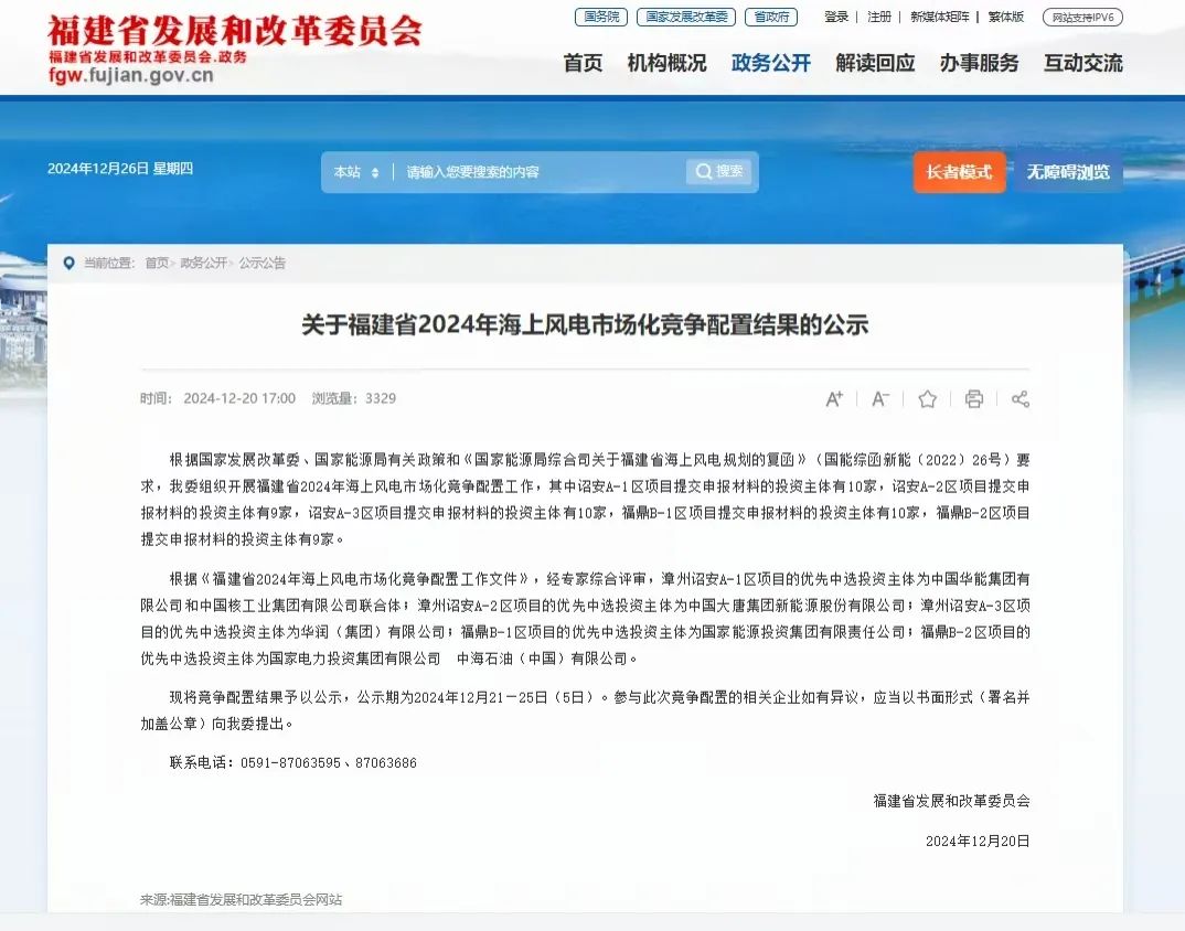 12月26日,國(guó)家電投集團(tuán)福建電力有限公司在福建省2024年海上風(fēng)電市場(chǎng)化競(jìng)爭(zhēng)配置工作中,與中海石油(中國(guó))有限公司共同取得福鼎B-2區(qū)70萬(wàn)千瓦海上風(fēng)電競(jìng)配指標(biāo)。