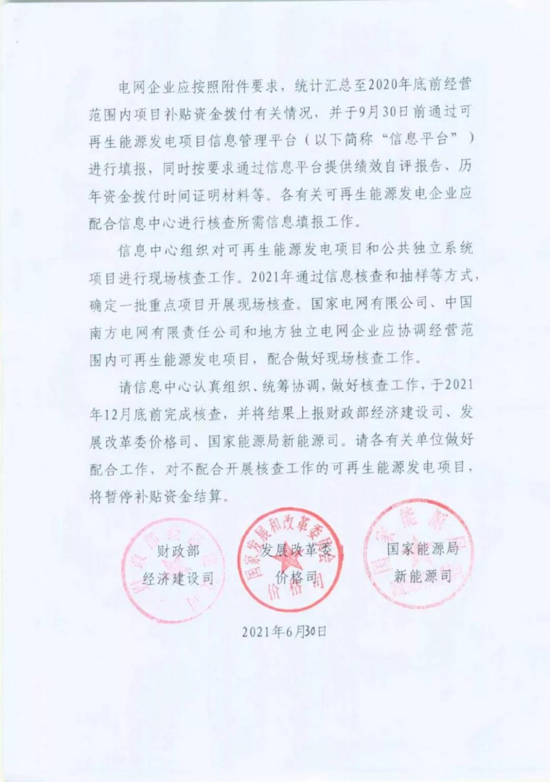 近日,財政部經(jīng)濟建設(shè)司、國家發(fā)改委價格司、國家能源局新能源司聯(lián)合印發(fā)《關(guān)于開展可再生能源電價附加補助資金核查工作的通知》,委托國家可再生能源信息管理中心對可再生能源電價附加補助資金使用情況、涉及項目進行核查。