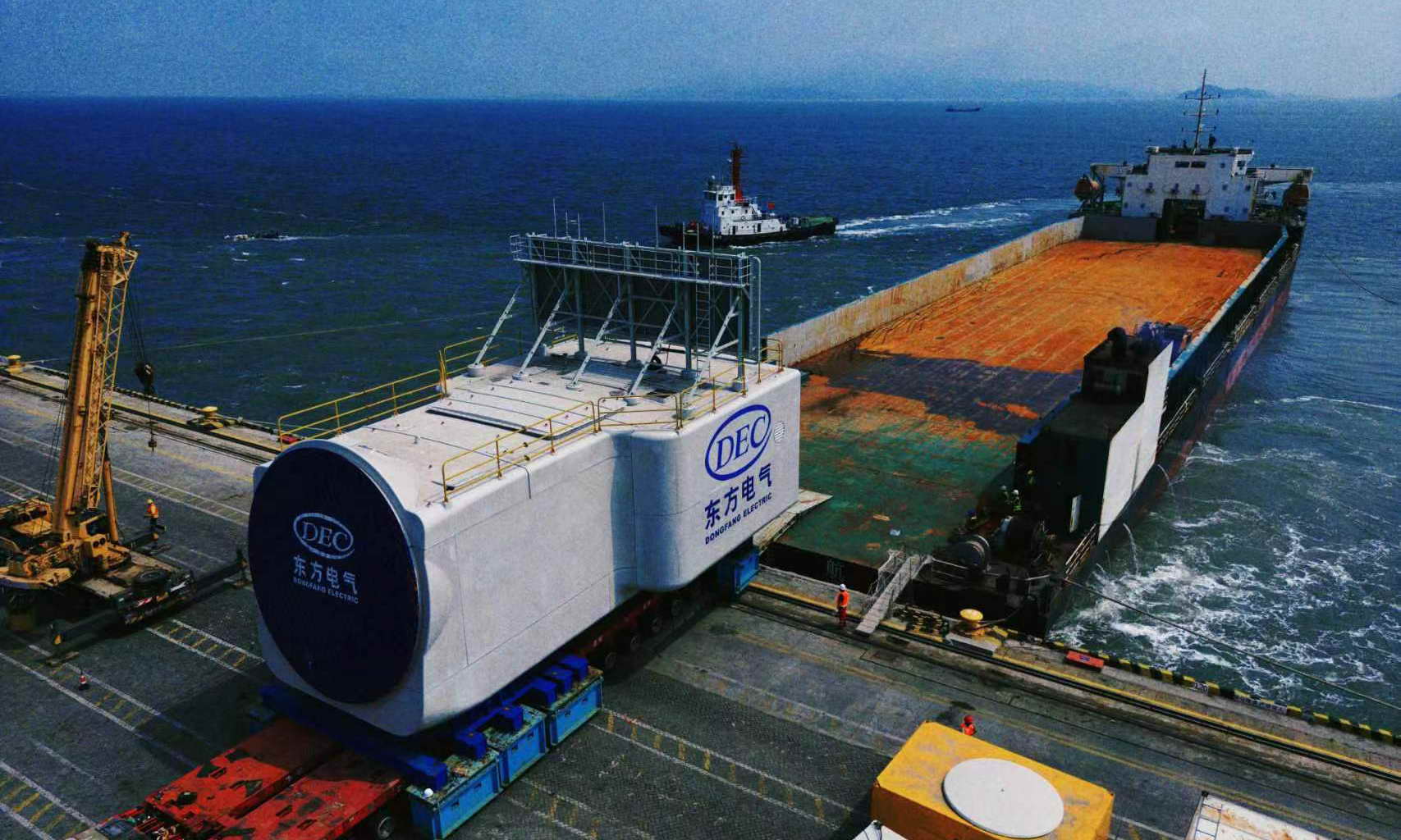 近日,由東方電氣集團(tuán)研制的全球單機(jī)容量最大26兆瓦海上風(fēng)電機(jī)組核心部件——153米全球最長葉片和超500噸全球最重機(jī)艙,安全抵達(dá)山東東營廣利港。