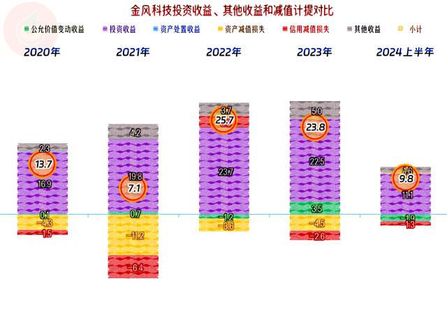 在其他收益方面有很大的影響,因為金風(fēng)科技這方面的金額相當(dāng)大,特別是2022年和2023年成為其盈利的主要構(gòu)成部分。雖然政府補助的金額并不低,但主要的收益項目還是“投資收益”,除了“權(quán)益法核算的長期股權(quán)投資收益”之外,還有金額也很大的“處置子公司產(chǎn)生的投資收益”和“因喪失重大影響或處置聯(lián)合營公司取得的投資收益”。