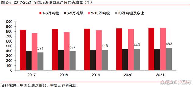 碼頭資源稀缺,港口岸線審批難度大。碼頭建設(shè)需通過省政府審批滿足規(guī)劃,港口岸 線使用權(quán)需要通過國家交通運輸部批復,碼頭岸線的資源審批難度持續(xù)加大,同時港口建 設(shè)需要自然條件良好的岸線資源,對周邊配套資源也有較高的要求。據(jù)中國交通運輸部披 露的數(shù)據(jù),截至 2021 年底,我國萬噸級及以上泊位數(shù)量共計 2659 個,風電塔筒管樁運輸 所需的 10 萬噸級及以上泊位數(shù)量共計 463 個,占萬噸級及以上泊位數(shù)量的 17%,年新增 數(shù)僅 23 個。因此已獲審批的港口碼頭等生產(chǎn)基地逐步成為稀缺資源,掌握相關(guān)資源的廠 商先發(fā)優(yōu)勢顯著。