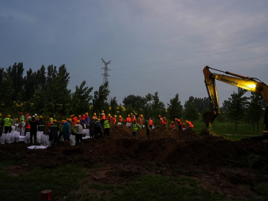 越是險情當前,越是考驗處置能力,越是考驗責(zé)任擔當。面對特大暴雨,電建雄安建發(fā)公司組建“黨員先鋒隊”全面參與新區(qū)防洪搶險工作。在張青口村抗洪現(xiàn)場,黨員志愿者們一邊召開防汛部署會,通報防汛工作開展情況,一邊與河道各監(jiān)測點保持每20分鐘一次的水位訊息溝通。同時,現(xiàn)場還根據(jù)需要儲備了大功率排水設(shè)備、沙包等防風(fēng)、防汛應(yīng)急物資,做好針對各種情形的應(yīng)急準備,嚴格落實值班值守及信息報送制度,確保各項防汛舉措全方位落實。