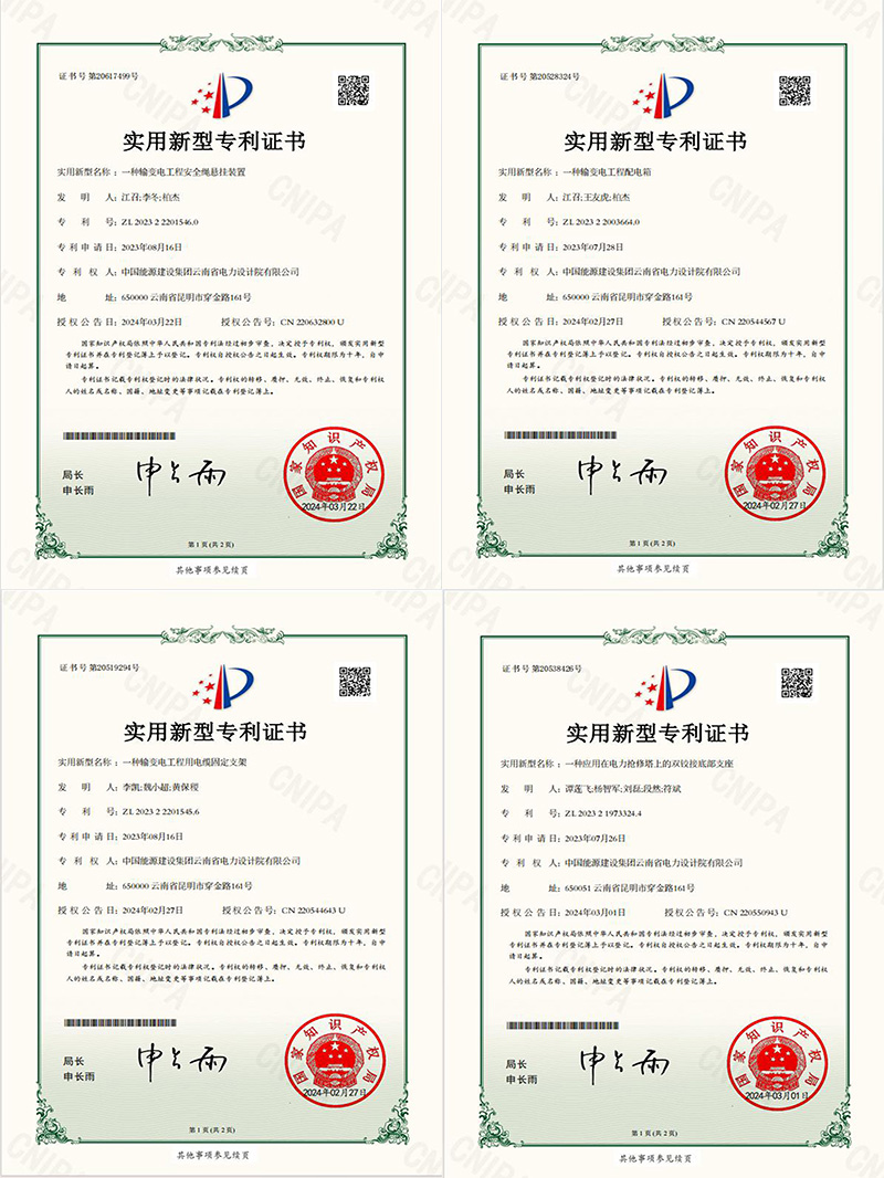 近日,由中國(guó)能建中電工程云南院獨(dú)立研發(fā)的“一種輸變電工程配電箱”“一種應(yīng)用在電力搶修塔上的雙鉸接底部支座”“一種輸變電工程用電纜固定支架”“一種輸變電工程安全繩懸掛裝置”四項(xiàng)成果獲得國(guó)家實(shí)用新型專(zhuān)利。
