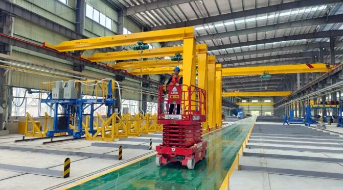 二期項目是建筑集團自行投資、建設(shè)、運營的專業(yè)化鋼結(jié)構(gòu)加工制造項目,占地61.3畝,總建筑面積約2萬平方米,新建鋼結(jié)構(gòu)生產(chǎn)線2條、新能源結(jié)構(gòu)生產(chǎn)線2條、噴涂車間1座,新增產(chǎn)能2.5萬噸。“二期項目于2023年9月動工,2023年12月29日主體鋼架開吊,2024年5月25日如期建成,歷時9個月,創(chuàng)造了項目建設(shè)的‘至精速度’。”淮南至精鋼結(jié)構(gòu)分公司經(jīng)理田偉告訴記者,為節(jié)約投資成本、提高建設(shè)效率,項目充分利用建筑集團擁有的投資、設(shè)計、建設(shè)、運營能力,強化協(xié)同作戰(zhàn),數(shù)智賦能,使建設(shè)的各個環(huán)節(jié)都能順暢銜接,確保項目快速推進。