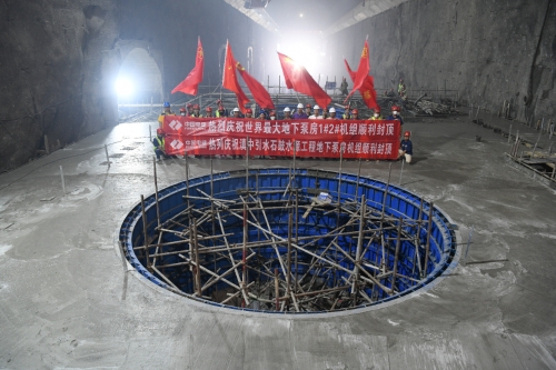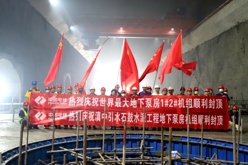 7月31日,伴隨著最后一車混凝土的傾倒,歷時310天,由中國水電十四局承建的世界最大地下泵房-滇中引水石鼓水源工程地下泵房1號2號機組順利封頂。