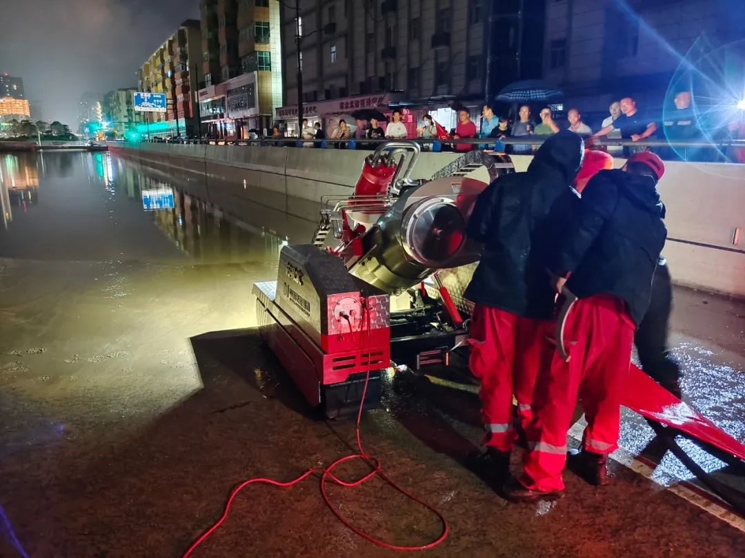 鄭州方向,安能三局派出25人,4臺(tái)龍吸水,2臺(tái)一體化泵車(chē),在京廣北路隧道由北往南展開(kāi)抽排水。針對(duì)鄭州站西廣場(chǎng)積水嚴(yán)重情況,中國(guó)安能三局采取“人歇機(jī)不停、兩班連續(xù)戰(zhàn)”的戰(zhàn)法,截止22日12時(shí)00分,完成抽排水26萬(wàn)方,水位下降約3.5米,已經(jīng)大幅度下降,西北側(cè)隧道道路面露出約60米。因下半夜抽排現(xiàn)場(chǎng)連續(xù)強(qiáng)降雨,抽排水仍在緊張工作中。在抽排水現(xiàn)場(chǎng),全體抽排水指戰(zhàn)員白天冒高溫、晚上頂濕冷,沒(méi)有一人叫苦叫累,他們團(tuán)結(jié)協(xié)作,有序有力奮戰(zhàn)在抽排水一線。