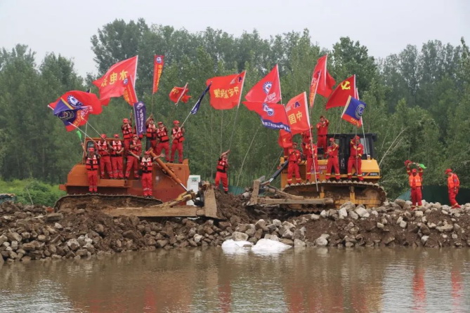 經(jīng)過救援隊員晝夜奮戰(zhàn),截至8月2日8時,共搶通道路100米、填筑石方1560方、裝填沙袋3100個,順利完成決口封堵任務(wù)并順利回撤。