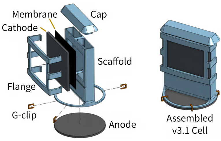 此外,在電極的整個長度上都有一個通氣間隙,頂部的保護蓋可以防止灰塵和碎屑掉入,切斷陰極與氧氣的接觸。陰極的一部分還涂有防水材料,這樣當洪水泛濫時,仍有一部分疏水性陰極與氧氣接觸,以保持燃料電池的運行。