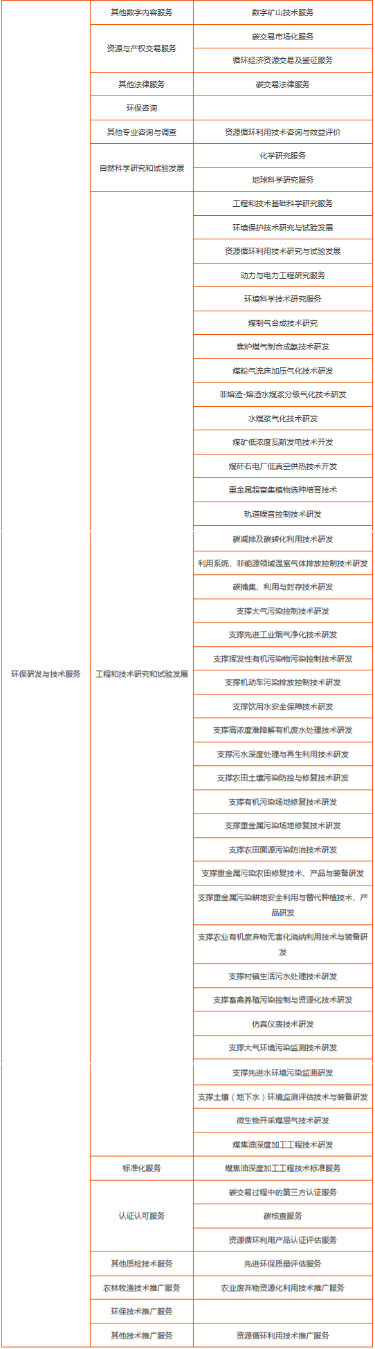 從具體國民經濟行業(yè)以及涉及到的重點產品和服務如下: