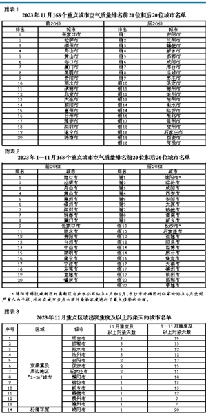 11月和1—11月重點區(qū)域出現(xiàn)重度及以上污染天的城市及具體天數(shù)詳見附表3。