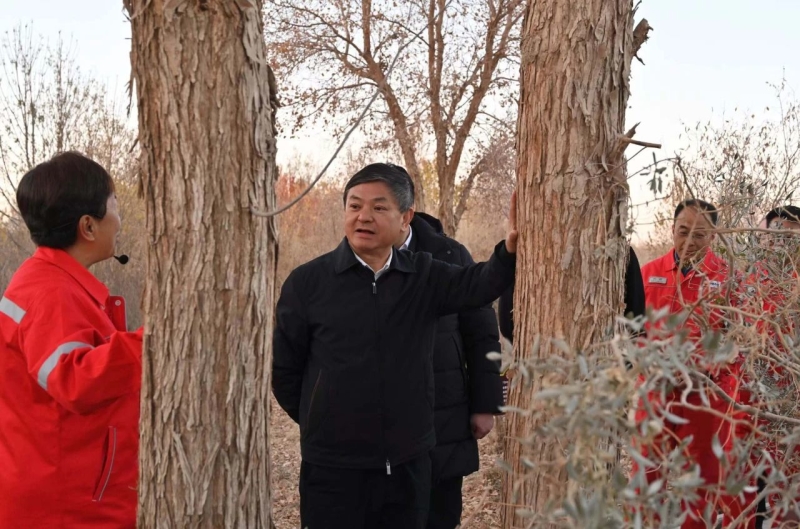 河西走廊—塔克拉瑪干沙漠邊緣阻擊戰(zhàn),是習(xí)近平總書記親自部署的“三北”工程三大標(biāo)志性戰(zhàn)役之一。黃潤秋來到兵團(tuán)第二師鐵門關(guān)市融媒體中心,聽取新疆河西走廊—塔克拉瑪干沙漠邊緣阻擊戰(zhàn)推進(jìn)情況介紹,了解防沙治沙阻斷沙漠合攏情況。他指出,要深入學(xué)習(xí)貫徹習(xí)近平生態(tài)文明思想和習(xí)近平總書記重要指示要求,扎實(shí)推進(jìn)阻擊戰(zhàn)重點(diǎn)工作,全面提升生態(tài)系統(tǒng)質(zhì)量和穩(wěn)定性,筑牢我國北方生態(tài)安全屏障。黃潤秋還來到位于巴州輪臺(tái)縣的塔中沙漠植物園、塔里木沙漠公路零碳示范工程進(jìn)行調(diào)研,對(duì)相關(guān)單位在沙漠腹地建設(shè)引種基地、在公路建設(shè)的同時(shí)開展防沙治沙研究、大力發(fā)展光伏產(chǎn)業(yè)等做法表示肯定,并鼓勵(lì)他們加強(qiáng)科研與工程結(jié)合,促進(jìn)國際交流合作,開發(fā)出更多本土化耐寒旱、耐鹽堿種質(zhì)資源,建立“喬、灌、草”相結(jié)合的立體生態(tài)體系,不斷提高沙漠地區(qū)植物、動(dòng)物多樣性,助力全球荒漠化治理。