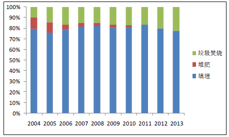 垃圾焚燒可以快速處理堆積成山的垃圾,有效減小垃圾的體積50%-90%,同時(shí)通過焚燒發(fā)電, 既解決了垃圾填埋的占地、污染問題,又實(shí)現(xiàn)了能源的清潔回收利用。目前,我國(guó)城市生活垃圾累積堆存量已達(dá)70 億噸,據(jù)國(guó)家統(tǒng)計(jì)局?jǐn)?shù)據(jù)顯示,截止2013 年我國(guó)生活垃圾填埋比例占68.2%, 垃圾焚燒僅占30.1%。