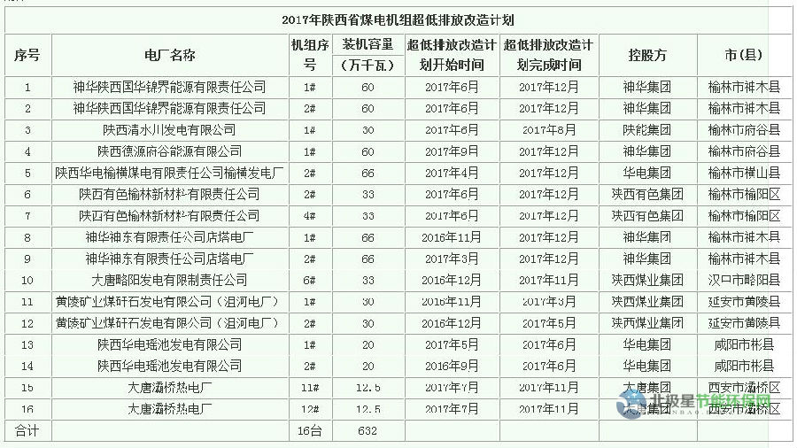 附件:2017年陜西省煤電機(jī)組超低排放改造計(jì)劃