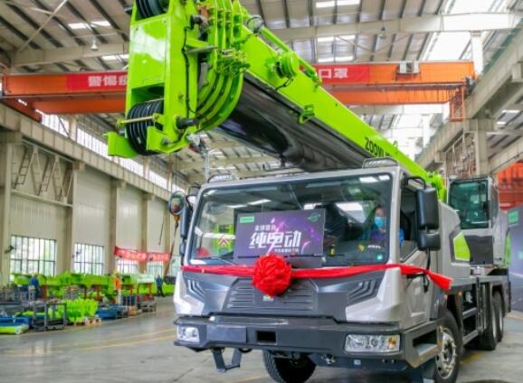 5月7日,一臺(tái)25噸極光綠純電動(dòng)汽車起重機(jī)在長(zhǎng)沙中聯(lián)重科泉塘工業(yè)園下線。這是全球首臺(tái)純電動(dòng)汽車起重機(jī),被譽(yù)為工程機(jī)械版“特斯拉”。