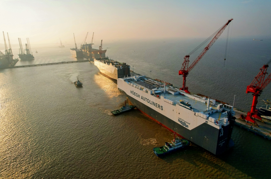近日,招商局集團(tuán)旗下招商工業(yè)海門基地建造的第一艘9100車雙燃料汽車滾裝船“禮諾極光”號,在海巡艇的引領(lǐng)和3艘拖輪的護(hù)航下,順利駛離船廠碼頭。該船是目前全球最大環(huán)保型汽車滾裝船,也是世界航運業(yè)綠色化、智能化發(fā)展的一個新起點。