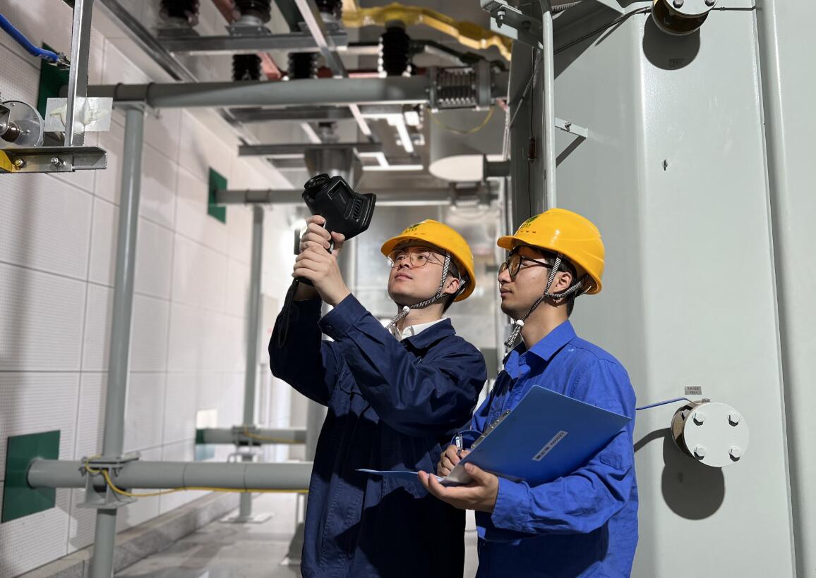 期間,巡視人員利用紅外測(cè)溫儀對(duì)設(shè)備逐一進(jìn)行測(cè)溫,特別是帶有一些重要負(fù)荷運(yùn)行的主變、電纜接頭、母線接頭、隔離開(kāi)關(guān)、二次倉(cāng)連接端子等一、二次設(shè)備,著重進(jìn)行排查,密切關(guān)注設(shè)備有無(wú)過(guò)負(fù)荷、發(fā)熱等異常狀況,并對(duì)主變油溫油位、有無(wú)異常聲音等情況,進(jìn)行拍照記錄。除此之外,巡視人員還檢查了全站的滅火器、消防水帶的情況,確保都在合格狀態(tài)并能正常使用。