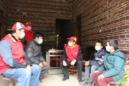 今年受新冠病毒疫情的影響,學校還未正常開學,孩子們都在家中自行學習,隊員采取逐戶上門探望的方式開展服務活動。在李志成、李志祥同學家中,兩兄弟正一起埋頭溫習功課,看到‘紅馬甲’叔叔們在這個時期里來到家里,兩兄弟高興得跳了起來,大聲的呼喊在對面山上挖筍的爸爸趕快回家。兄弟倆的媽媽離家出走十多年未回,爸爸又患上了間歇性精神病,三父子相依為命,生活來源主要依靠農村低保補助和叔叔的資助,家境貧困令人心酸??吹絻尚值芘d高采烈地拿著叔叔們給的‘紅包’,李爸爸眼中充滿了晶瑩和感動,緊緊地握著隊員們的手無法言語。李依婷同學是六年級班上唯的女生,文靜秀氣不愛言語,由于父母離異后紛紛外出,小依婷跟著年邁的奶奶共同生活,學習非??炭啵煽冊诎嗌吓琶傲?,隊員們?yōu)樗蜕狭伺D毯臀繂柦?,和她一起翻閱了學習筆記,親切鼓勵她要努力學習,好好報答奶奶的養(yǎng)育之恩···