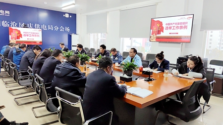 中國電力網(wǎng)訊 2022年2月23日,臨滄鳳慶供電局以會(huì)議代培訓(xùn)的形式組織局機(jī)關(guān)黨支部書記、黨務(wù)工作者、基層黨支部書記、全體共產(chǎn)黨員召開黨建工作管理制度學(xué)習(xí)會(huì)議,會(huì)議學(xué)習(xí)了《中國共產(chǎn)黨基層組織選舉工作條例》《云南電網(wǎng)有限責(zé)任公司組織生活會(huì)業(yè)務(wù)指導(dǎo)書》《云南電網(wǎng)有限責(zé)任公司黨支部業(yè)務(wù)手冊(cè)(2021版)》《云南電網(wǎng)有限責(zé)任公司黨內(nèi)評(píng)選表彰工作業(yè)務(wù)指導(dǎo)書》等內(nèi)容。